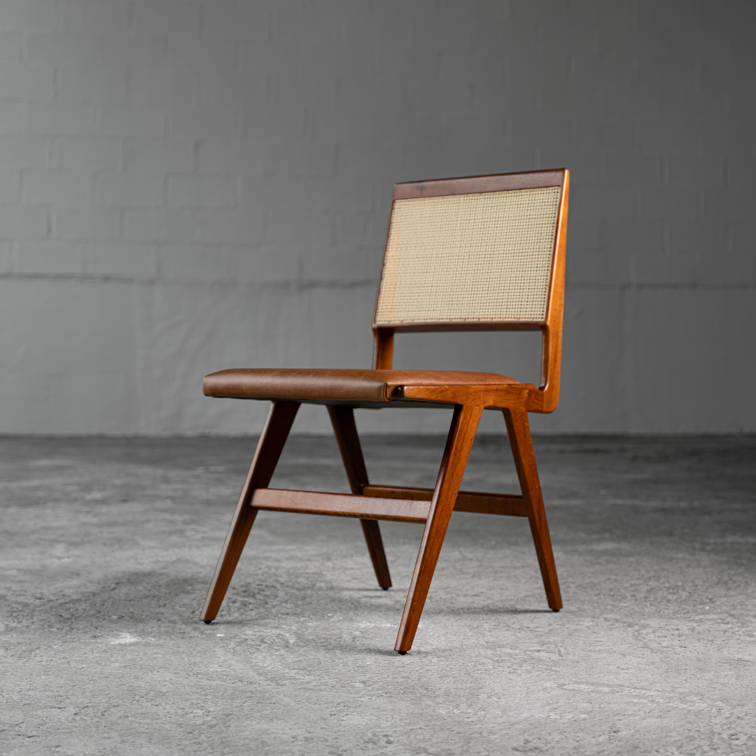 A Cadeira Palhinha é um dos ícones do mobiliário brasileiro moderno. Seu desenho destaca o contraste entre a estrutura em madeira e o encosto em palha natural tramada, criando uma peça leve, ventilada e elegante. Desenvolvida nos anos 1950, ela carrega a simplicidade e a precisão típicas do olhar de Martin Eisler, mantendo-se atual em qualquer composição.