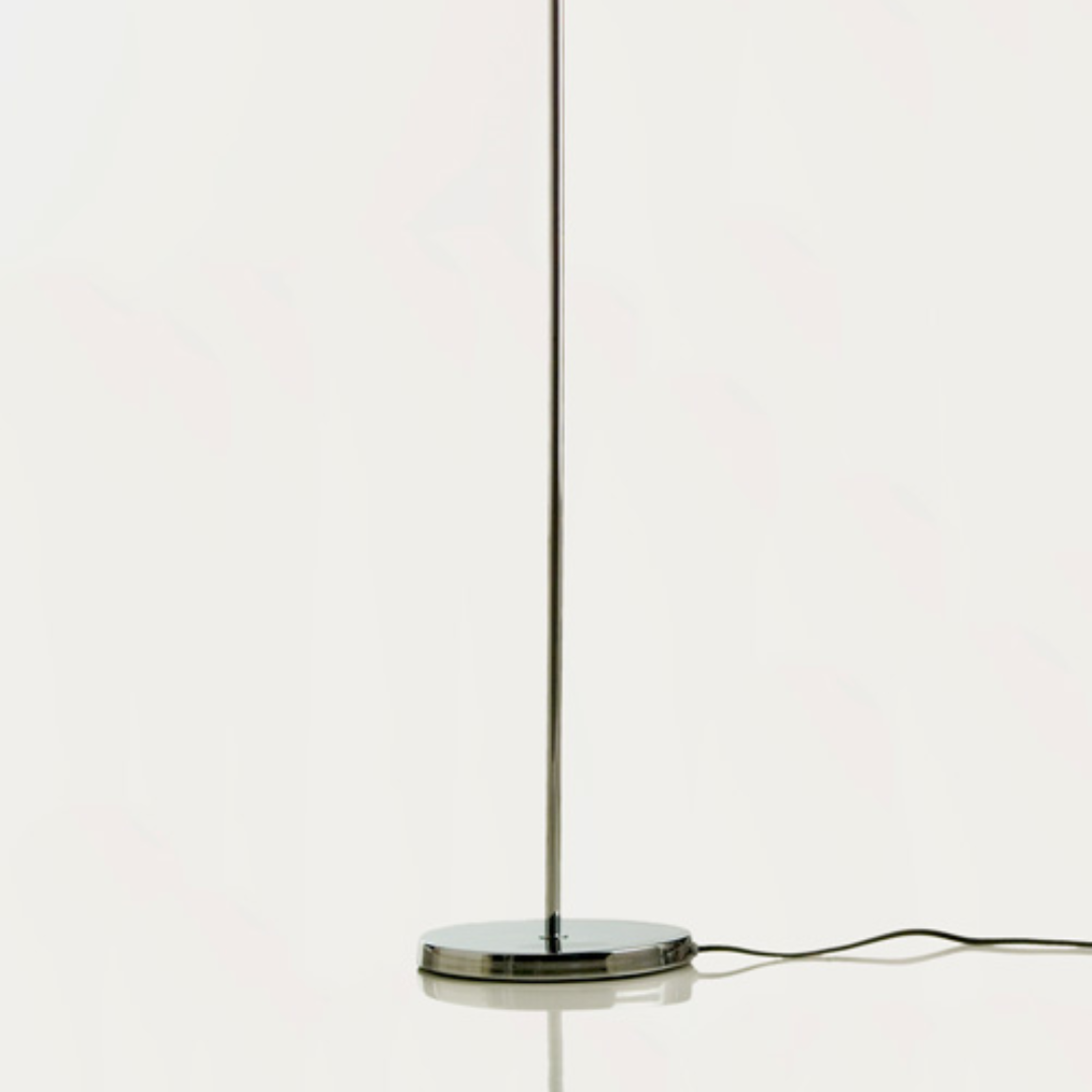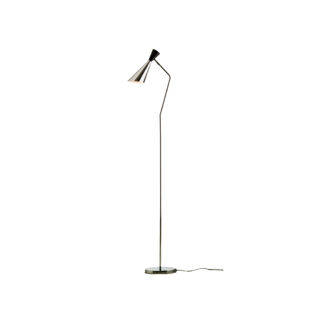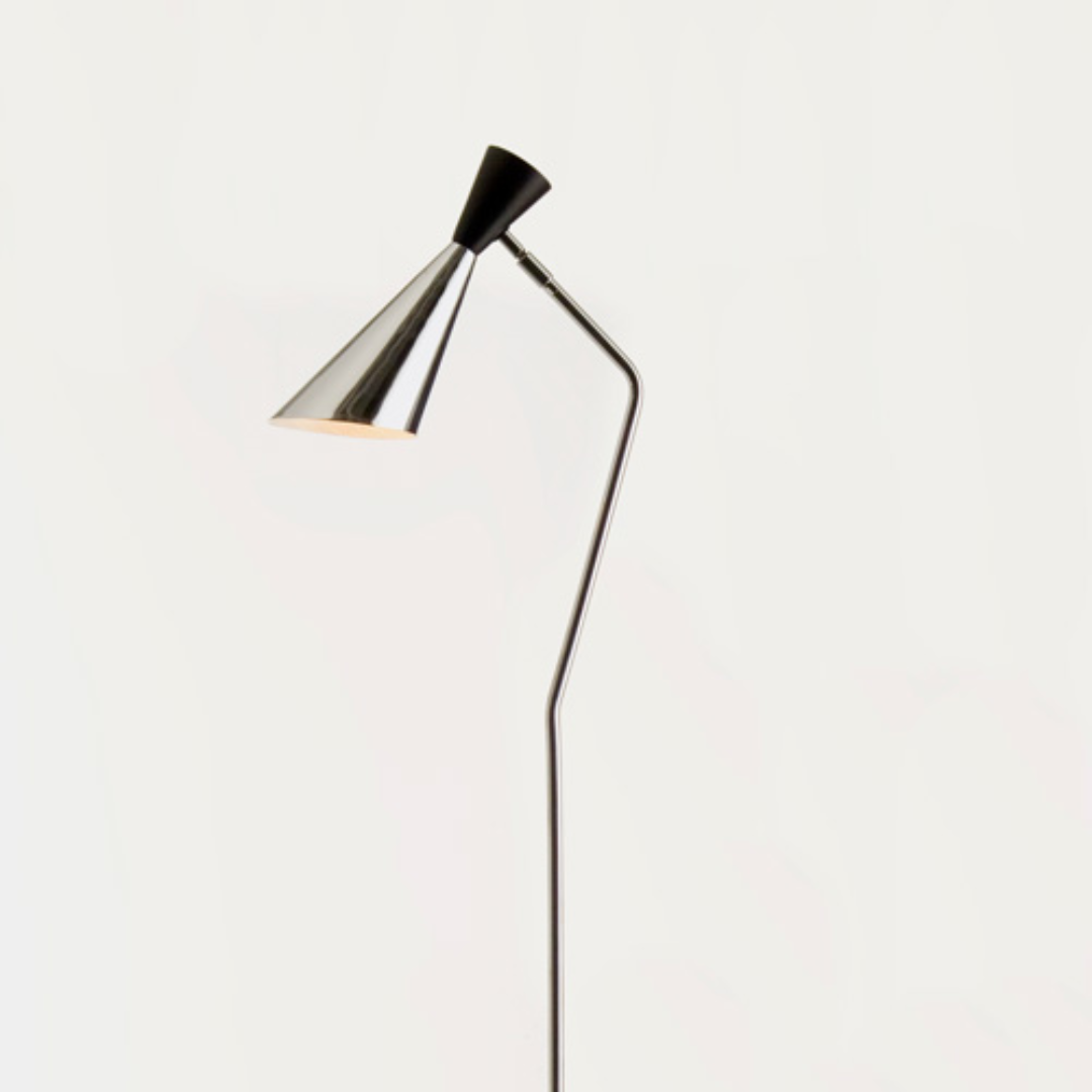 Foi inspirado em um abajur dos anos 50 e mantidas as linhas refinadas do original. Alterações como o acabamento conferiram ar mais leve e sofisticado.