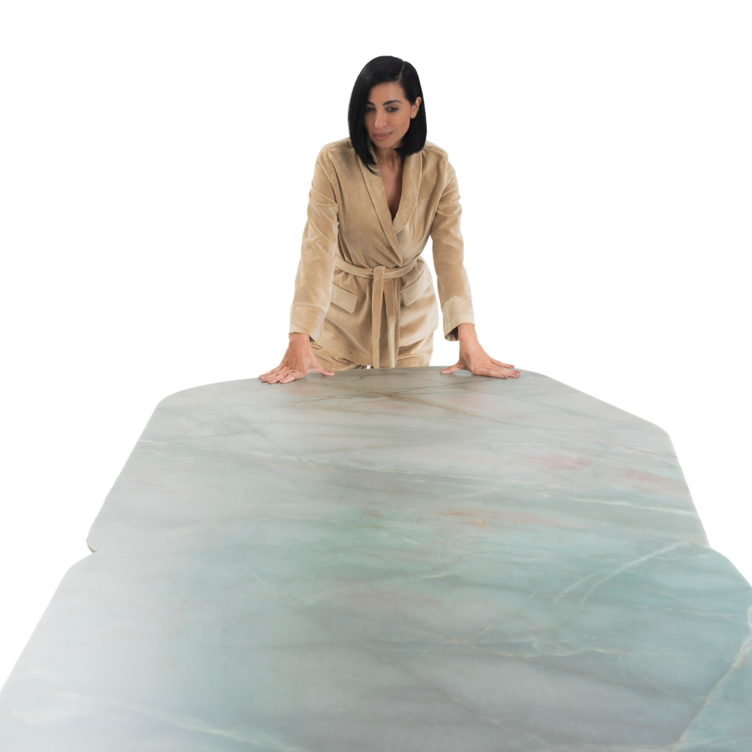 A mesa Fusão expressa em sua forma e função o núcleo simbólico da coleção Italo-Tropical: a união entre culturas, saberes e afetos de duas terras. Seu nome — que carrega o mesmo sentido em português e italiano — reflete essa fusão literal e poética entre o Brasil e a Itália, entre o design autoral e as memórias de convivência. É uma peça que celebra o encontro, o compartilhar, a mesa como território de trocas culturais e afetivas.