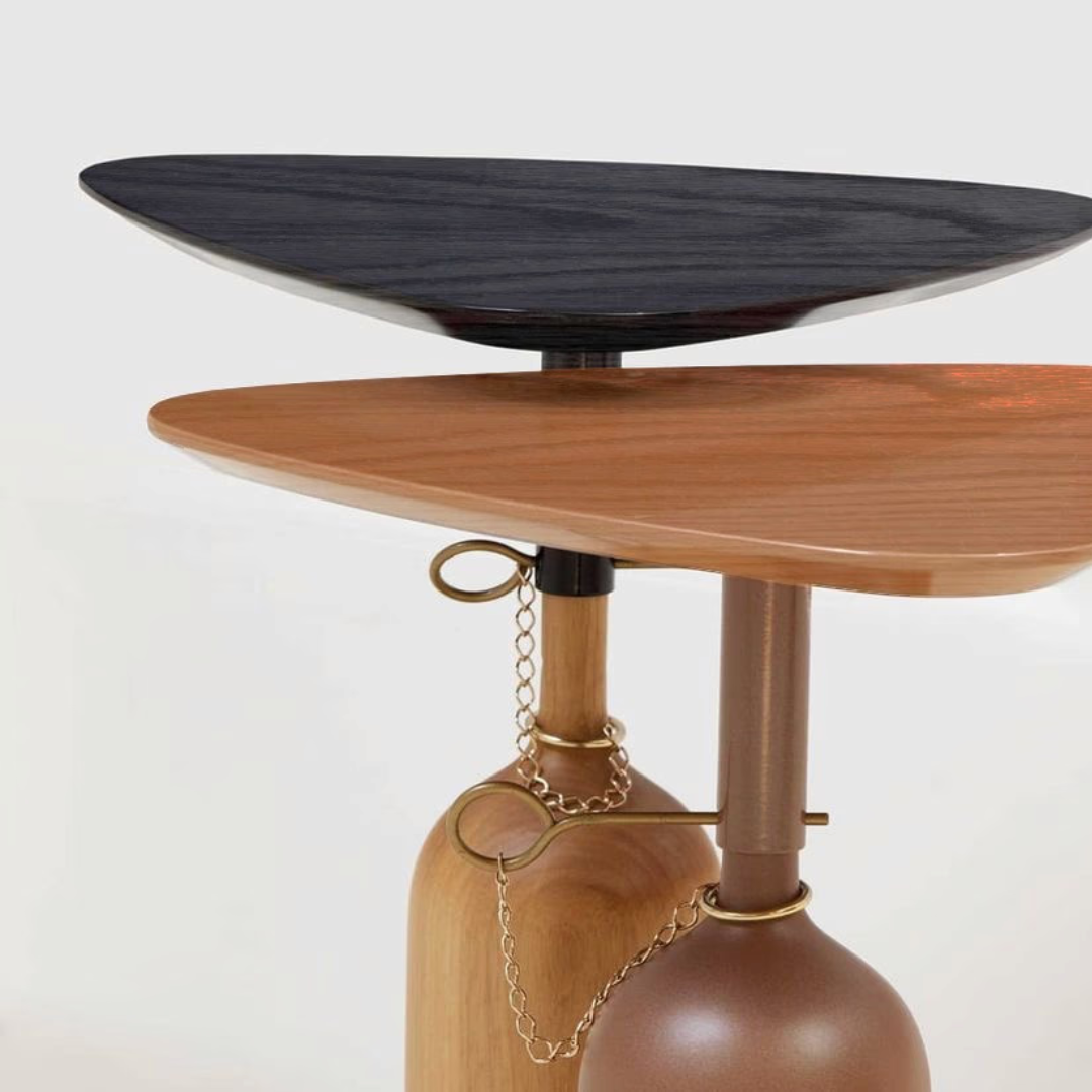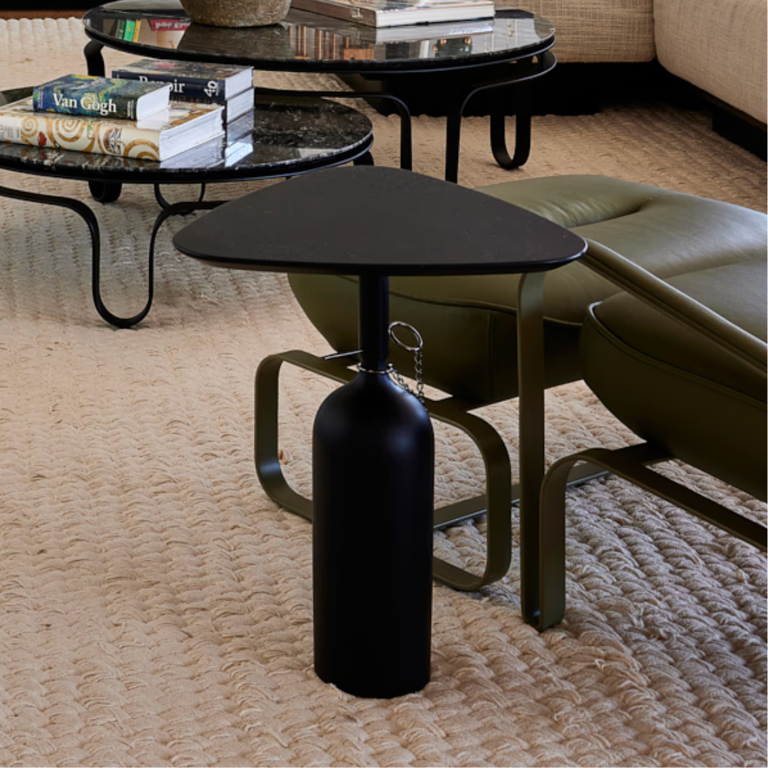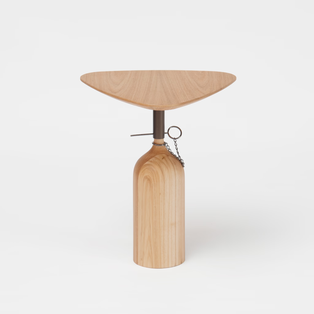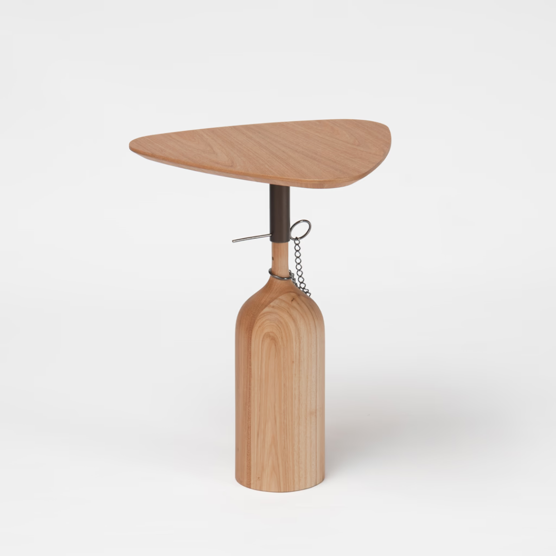 É fácil entender por que a mesa Botelha foi batizada com esse nome: sua base de madeira lembra o formato de uma garrafa. Além do acabamento impecável, a peça traz uma dose de humor à casa.