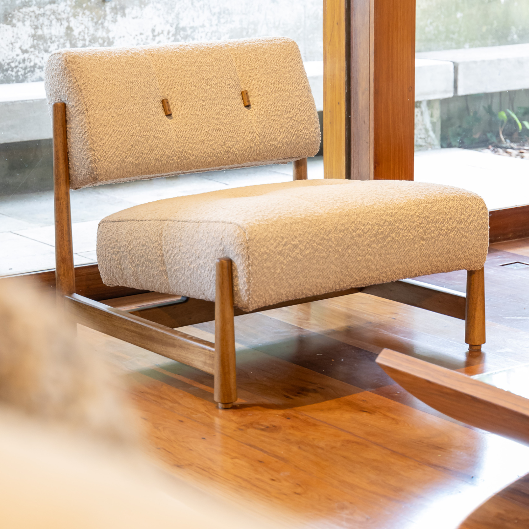 A peça tem como conceito a busca por uma sensação de aconchego e sofisticação, com estrutura simples e que valoriza o conforto. Sua forma foi pensada para se integrar tanto a espaços modernos quanto mais tradicionais, oferecendo versatilidade e harmonia ao ambiente. Uma peça atemporal, que une funcionalidade e beleza.
