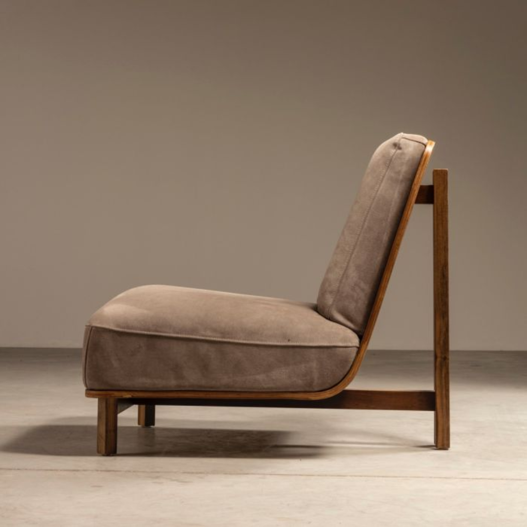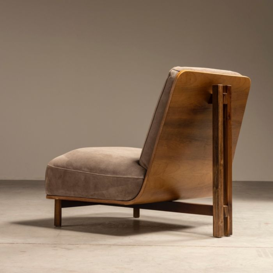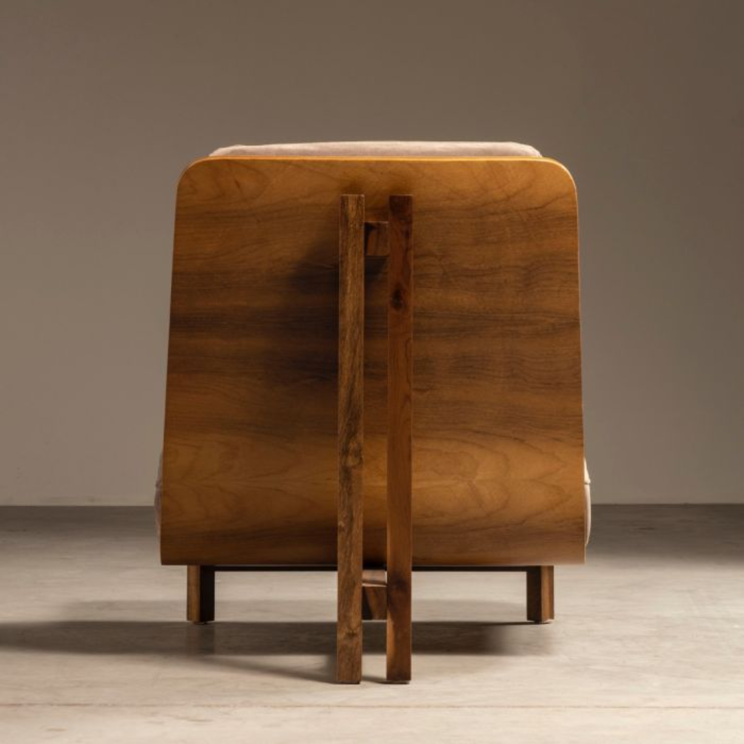 A Poltrona Sabará traz um design escultural e instigante, marcado por suas curvas envolventes e a presença inesperada de três pés. A estrutura em imbuia maciça reforça sua elegância atemporal, enquanto a composição assimétrica adiciona personalidade e fluidez. Uma peça que une conforto e identidade, transformando qualquer ambiente.