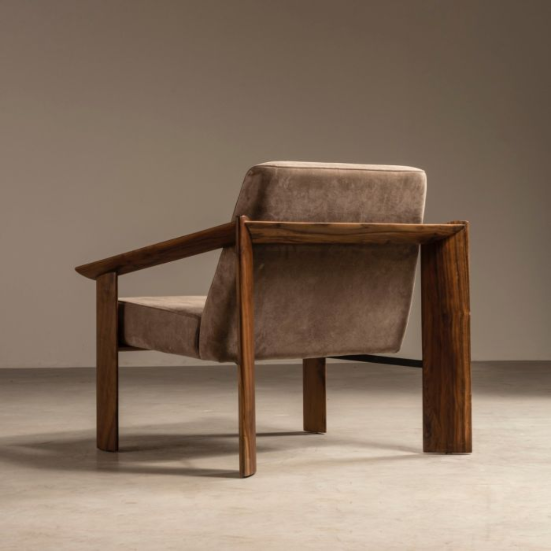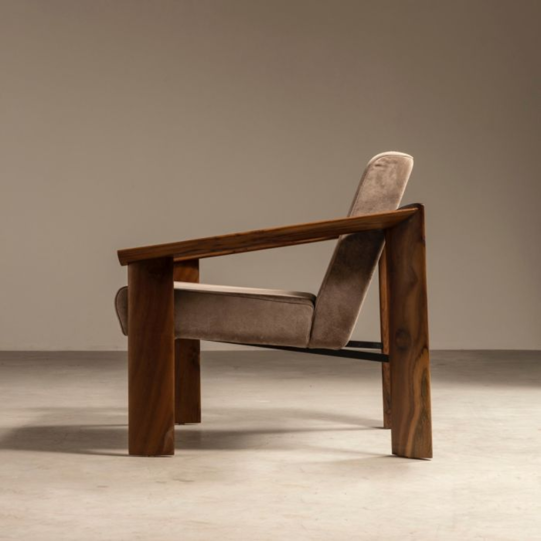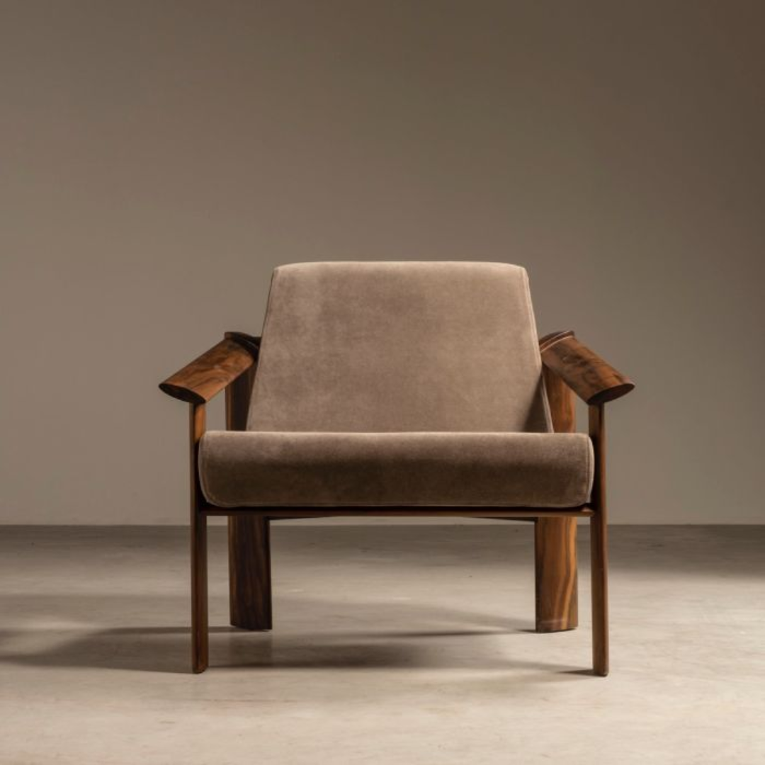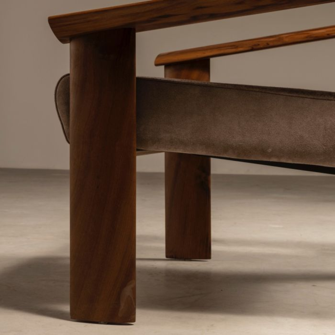 A Poltrona Sagaço tem braços angulados que criam uma identidade única, oferecendo suporte ideal para o descanso. A estrutura em imbuia maciça reforça a solidez da peça, enquanto suas linhas fluidas garantem leveza e elegância. Um convite ao conforto com estética contemporânea.