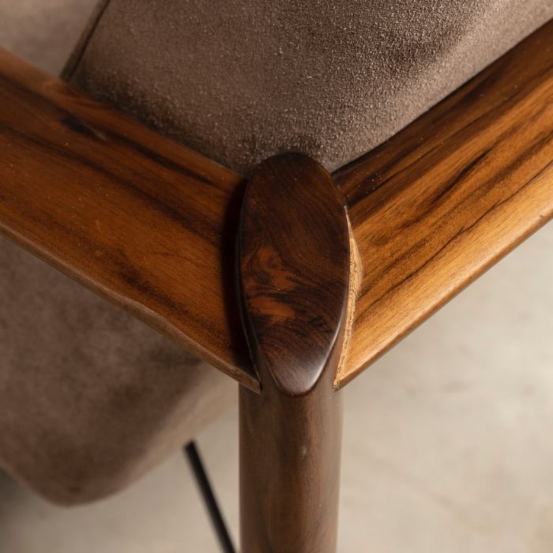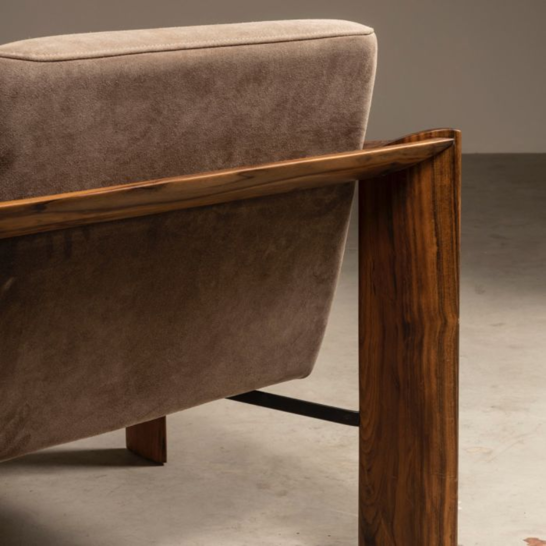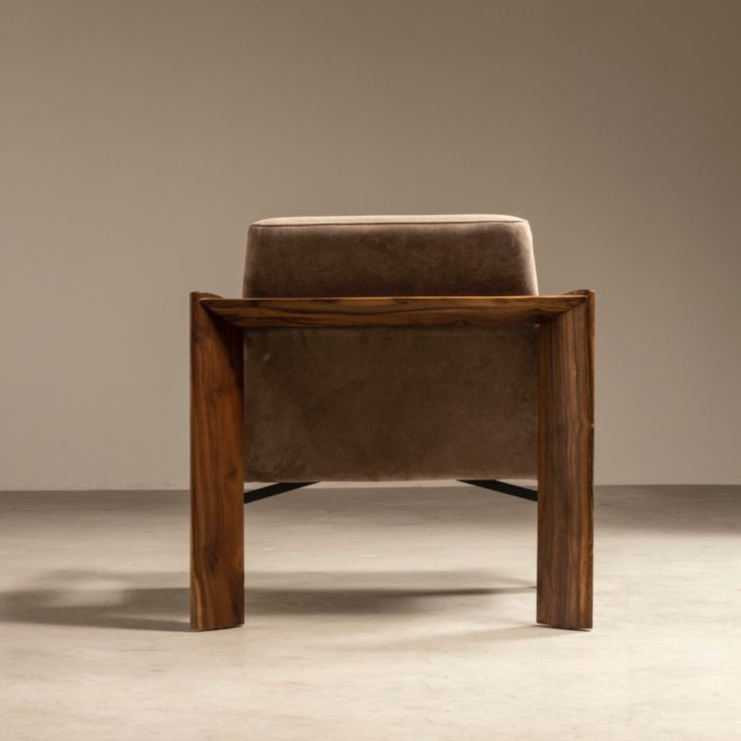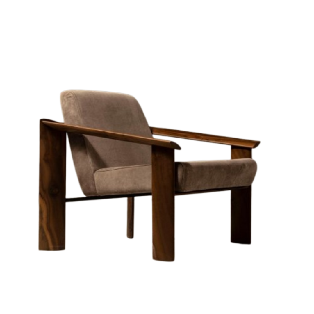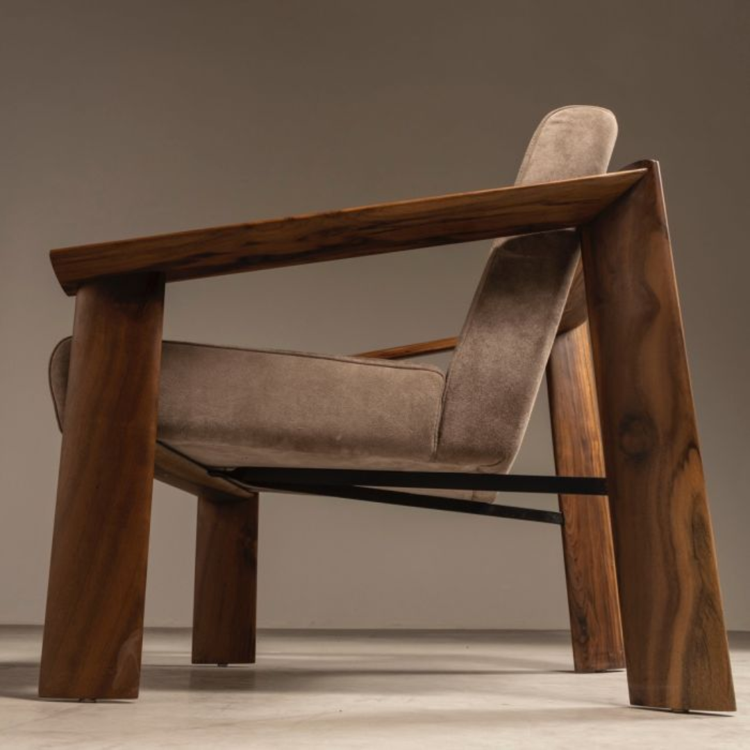 A Poltrona Sagaço tem braços angulados que criam uma identidade única, oferecendo suporte ideal para o descanso. A estrutura em imbuia maciça reforça a solidez da peça, enquanto suas linhas fluidas garantem leveza e elegância. Um convite ao conforto com estética contemporânea.