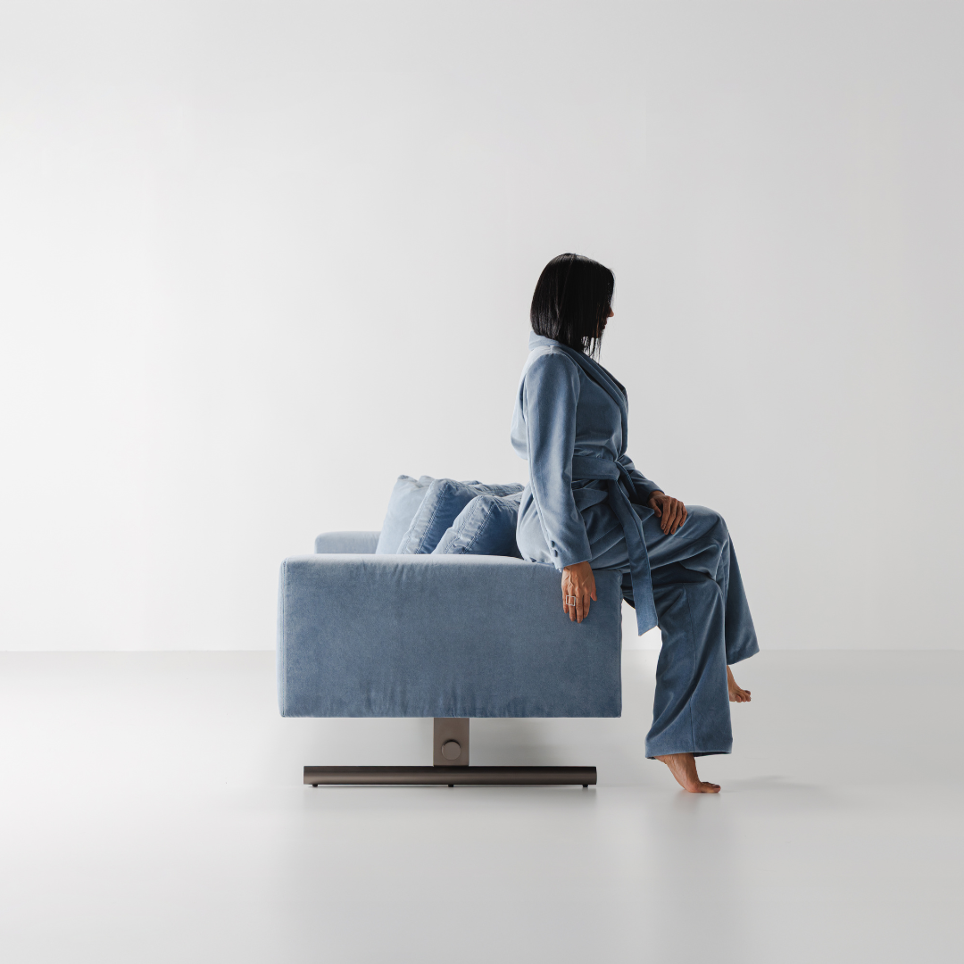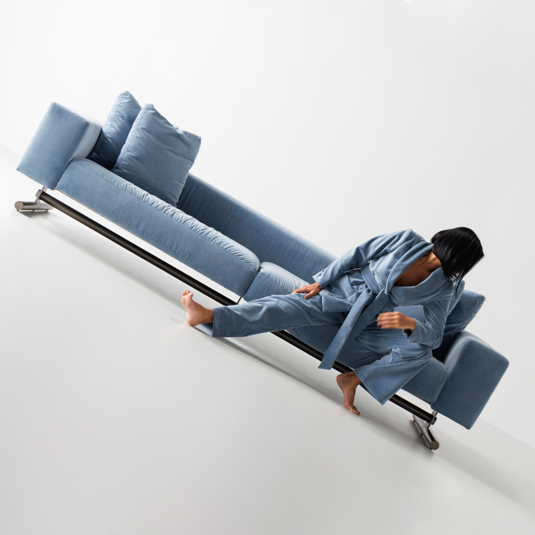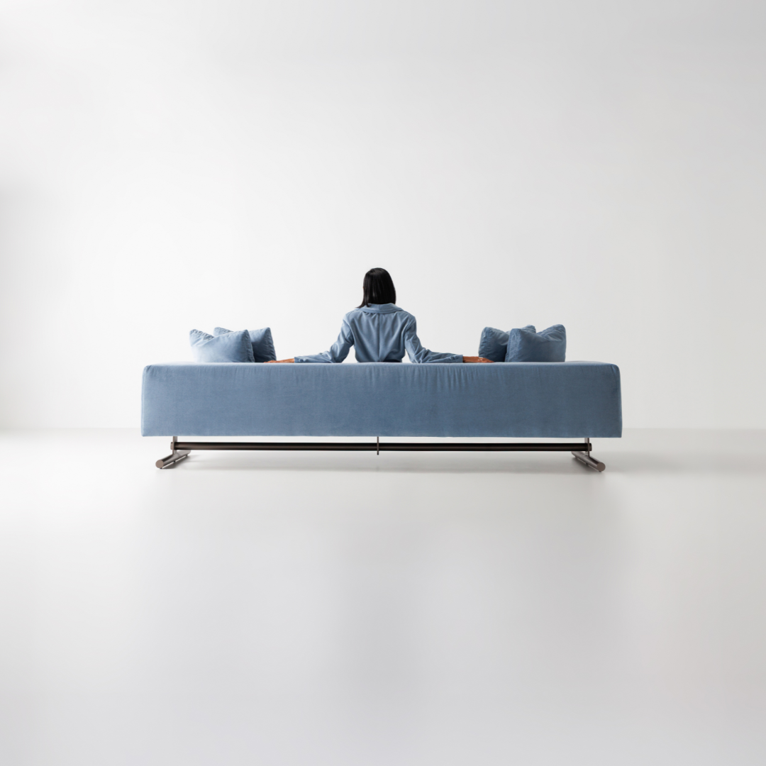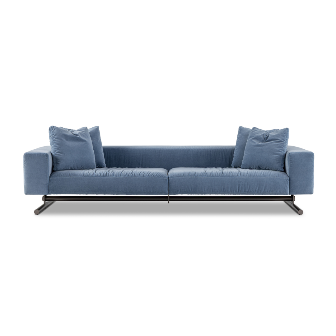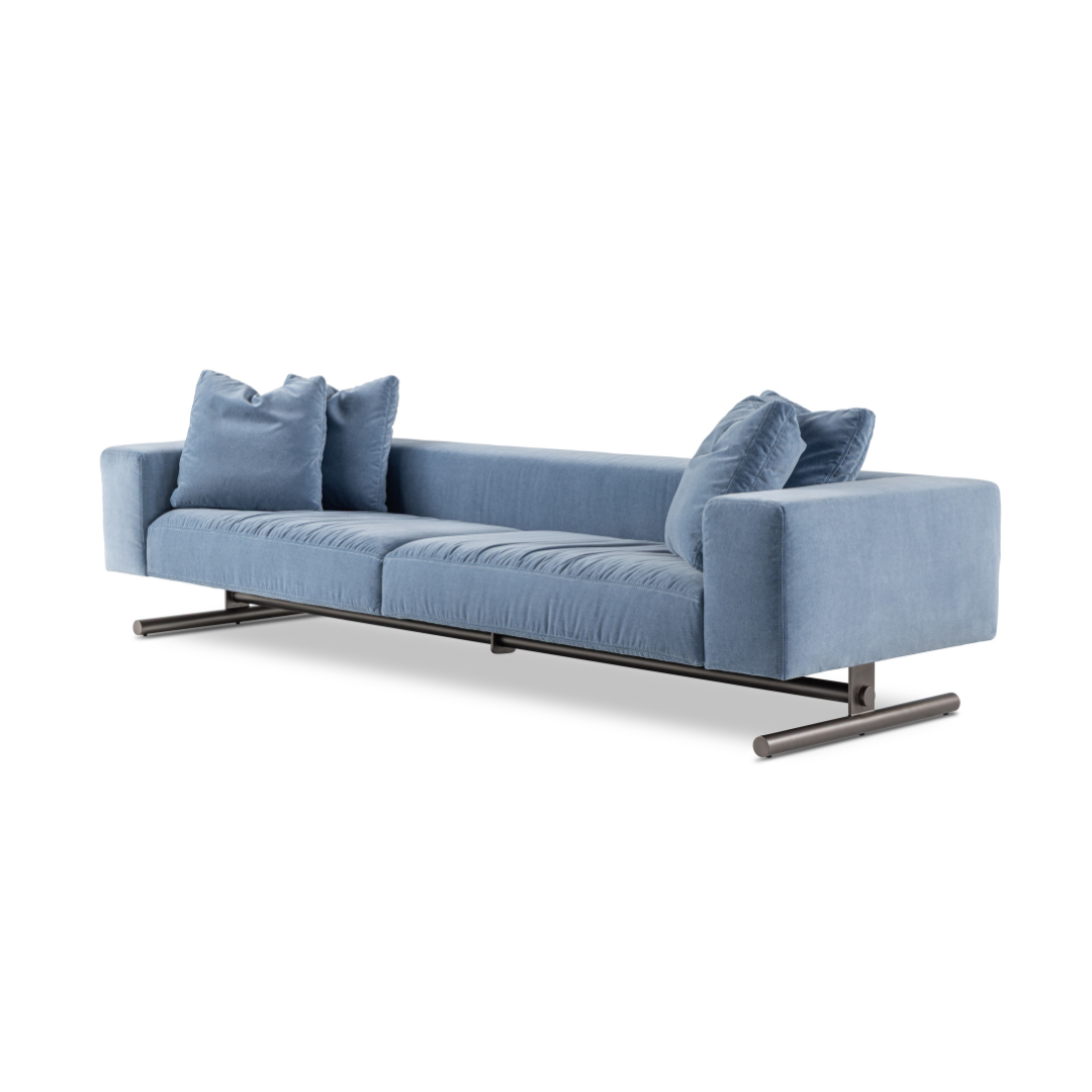 A escolha do nome reflete com precisão o papel deste sofá em uma ambientação contemporânea: uma peça que comanda o espaço com elegância e racionalidade, aliando forma refinada.