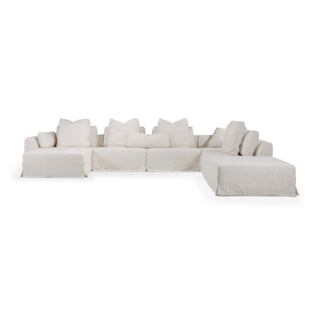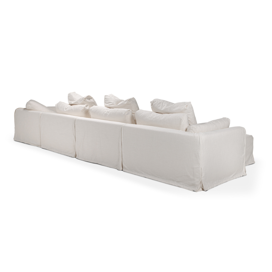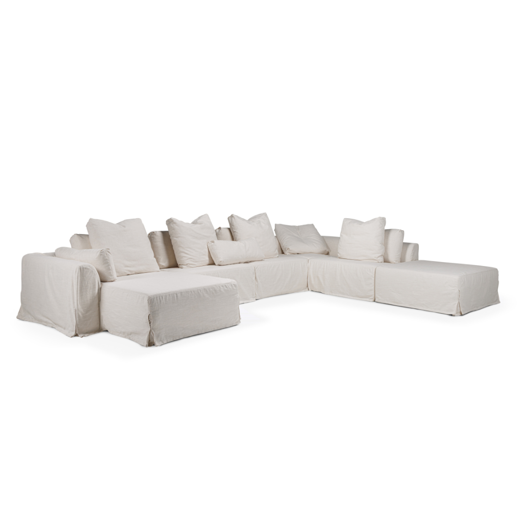 Com proporções generosas, almofadas volumosas e tecidos naturais de toque macio, o Líbero apresenta uma linguagem visual acolhedora e descontraída, feita para o uso cotidiano. Não teme os vincos do tecido; ao contrário, valoriza o tempo, o gesto e a vivência.